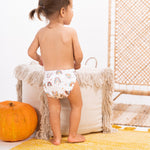 Einfache Beinbündchen, die sich super ans Baby anschmiegen und nicht einschnüren sowie ein Bündchen auf dem Rücken sorgen für optimalen Sitz und Halt. Zwei Laschen sorgen dafür, dass Prefold, Mullwindel oder gerade Saugeinlagen nicht verrutschen und alles an Ort und Stelle bleibt.