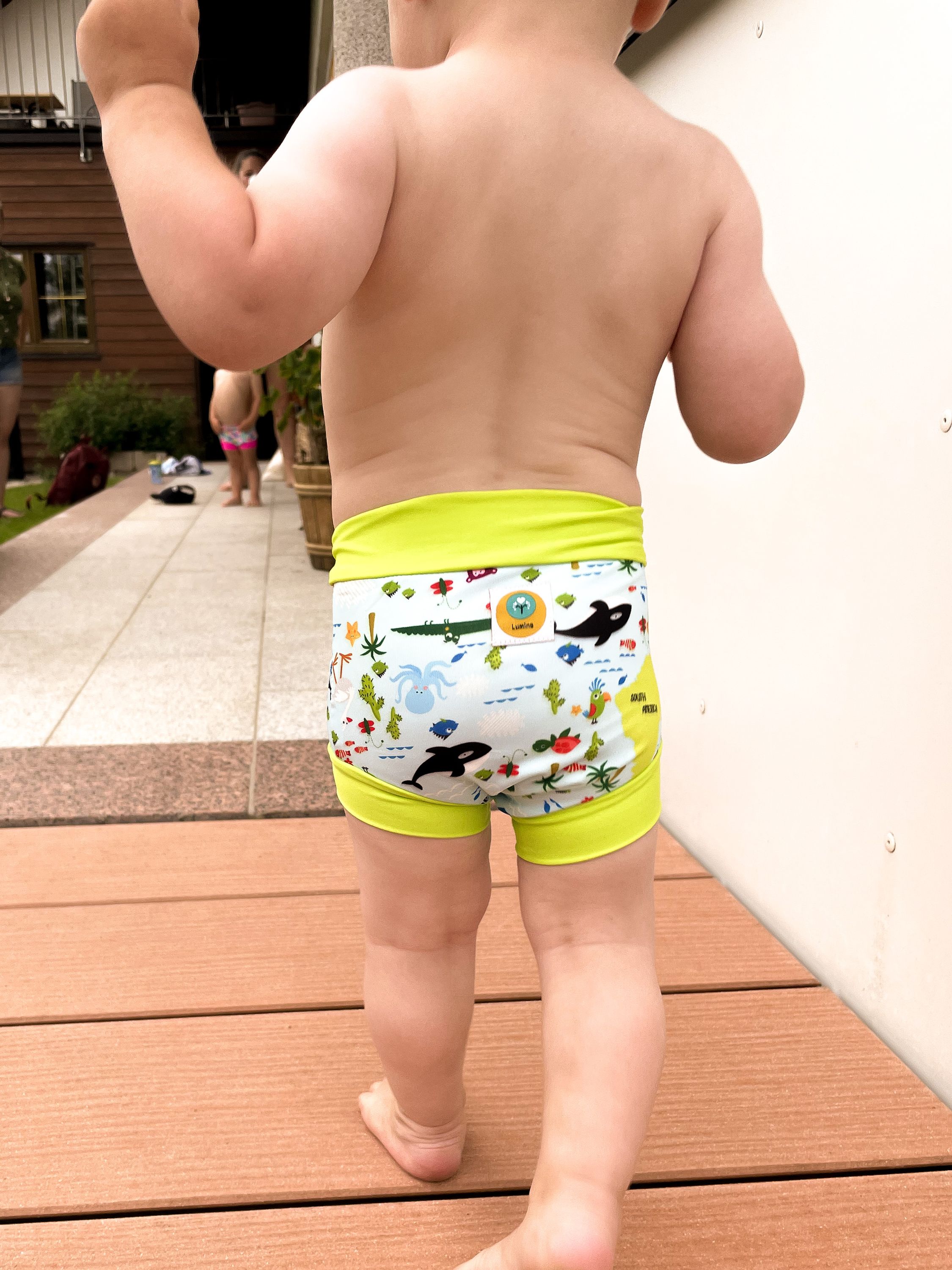 Die Schwimmwindeln von Lumina bestechen durch ihre körpernahe Form und die weichen Bündchen.  Sie können angezogen werden wie ein normale Badehose, das ist besonders toll für alle die schon keien Windeln mehr benötigen. Durch die zwei Schichten hält die Windel aber auch Stuhl gut zurück, sodass bei den Beinchen oder am Rücken nichts rauslaufen kann.